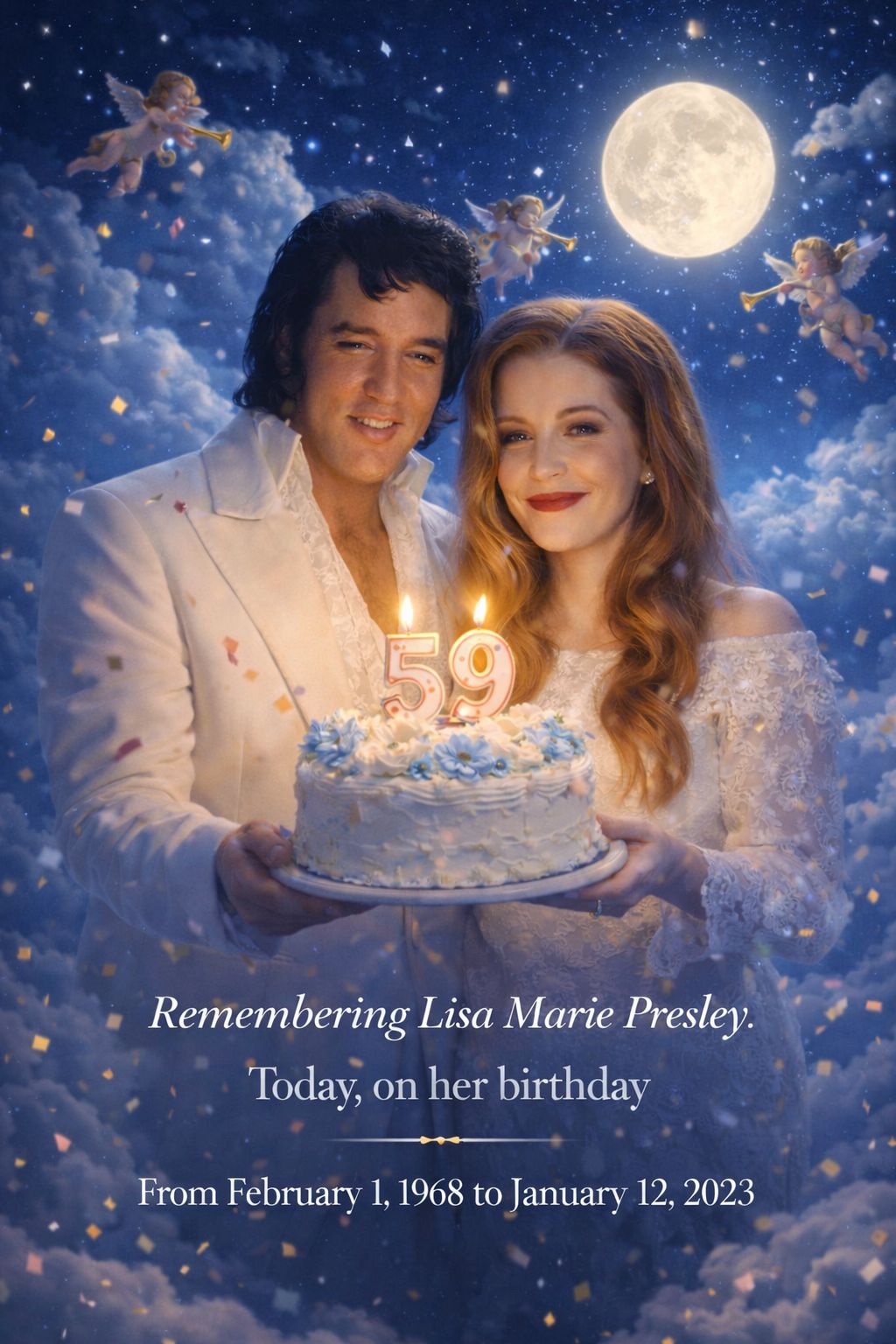 A song that appears on a special day has quietly transformed into one of the most moving musical moments in modern memory — a long, gentle melody released on a birthday rich with meaning, carrying the emotional weight of generations. The voices belong to Elvis Presley and his daughter Lisa Marie Presley, finally meeting across time in a recording that feels less like a performance and more like a whispered prayer. From the very first note, the song unfolds slowly, allowing silence to breathe between phrases, as if honoring the distance that once separated their lives and now connects their spirits.